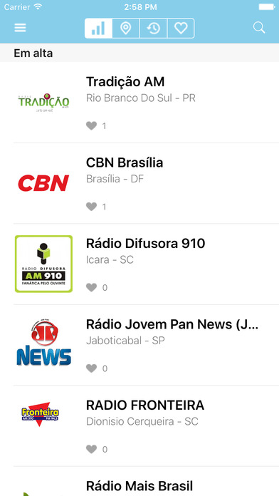 As rádios mais favoritadas aparecem em uma lista com destaque especial